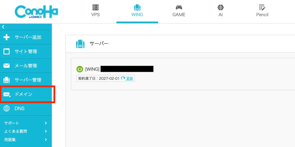 サーバーの契約が完了したら、次にドメイン(サイトのURL)を取得してサーバーで使える状態にします。まずはConoHaの管理画面にログインしましょう。