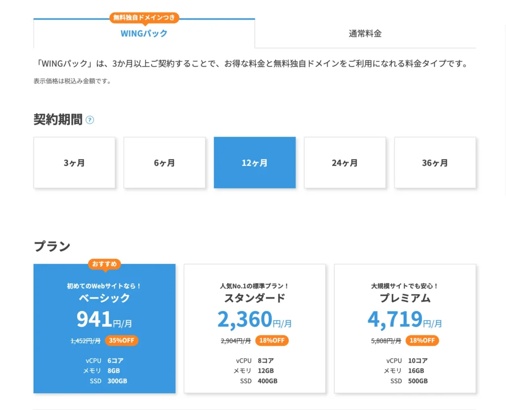 - プラン: ベーシック(個人ブログや一般的な企業HPならこれで十分です)